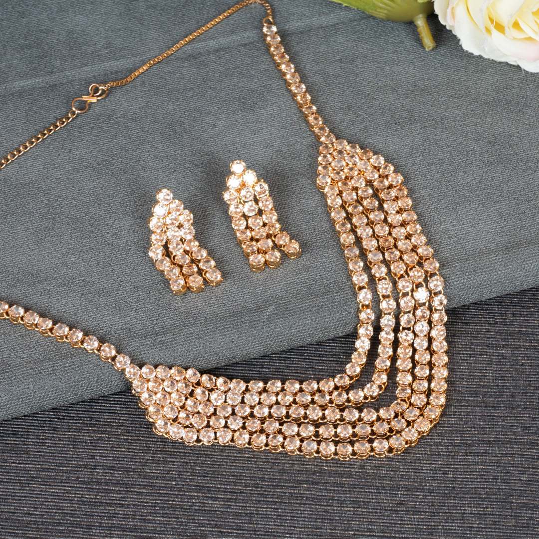 Elegante Premium Gold Plated Layered Diamond Necklace Set