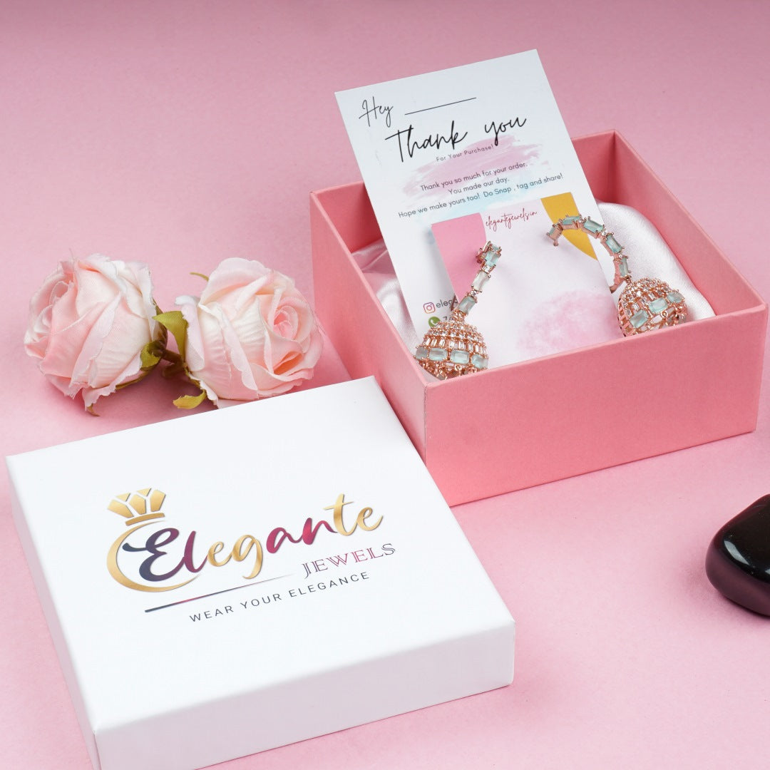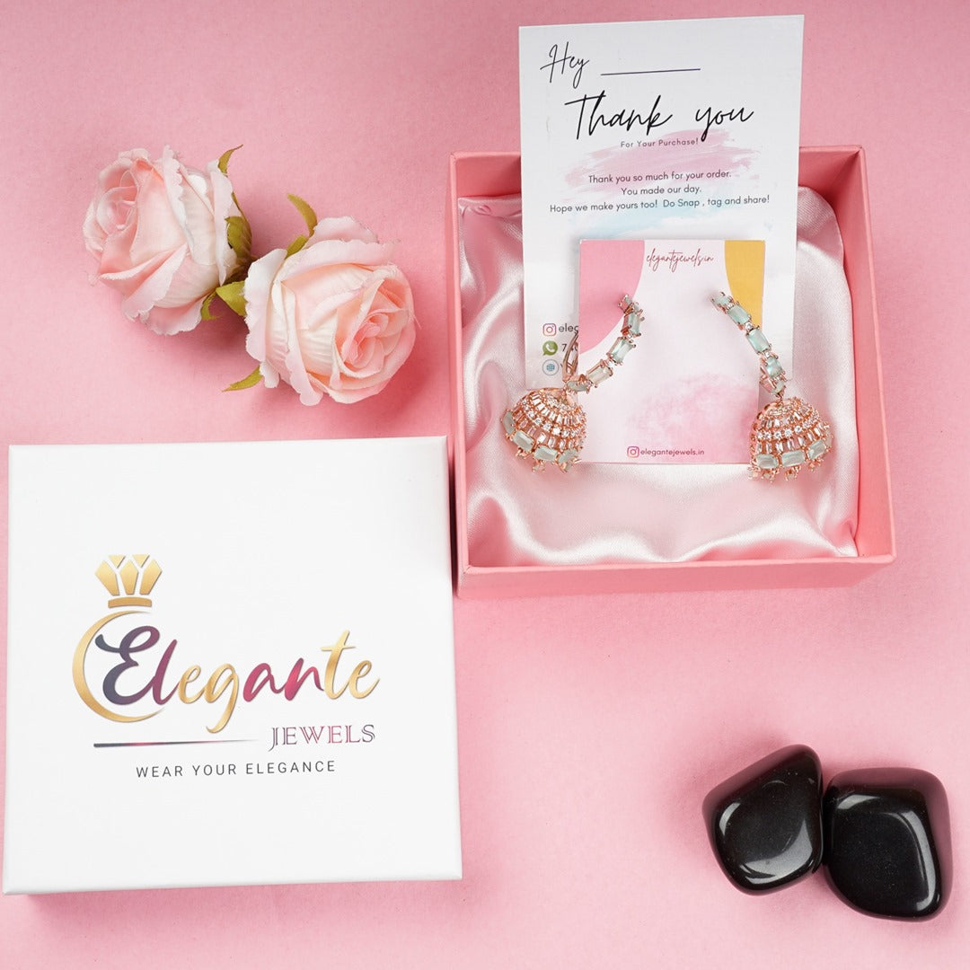 Elegante Rose Gold plated Mint Green Diamond Jhumka