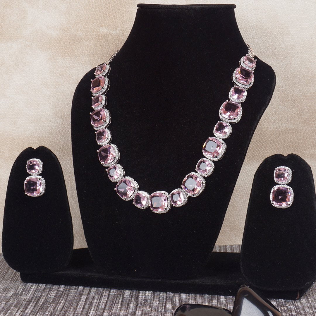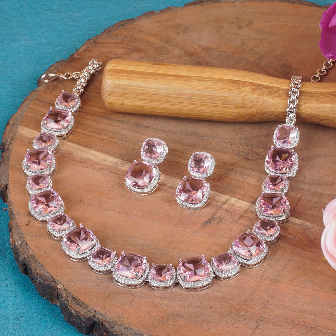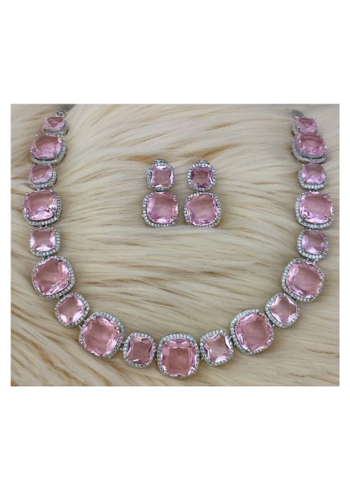 Exclusive Pink Doublet Silver Plated Necklace Set