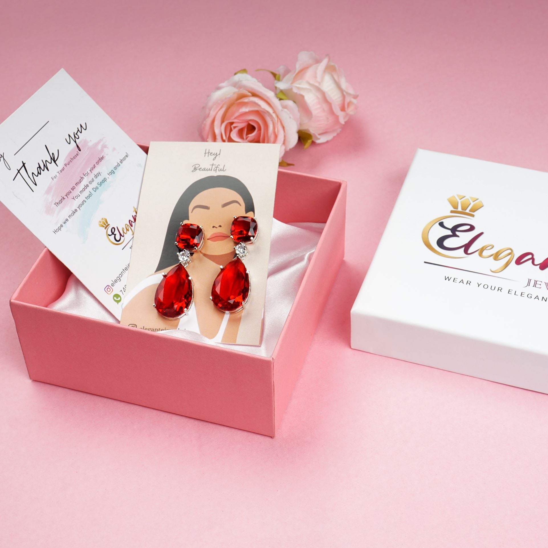 Designed for unforgettable moments, these earrings are perfect for dates, movies, romantic evenings, and parties. The vibrant Red hue of the Zircon Diamond adds a touch of romance and elegance to any outfit.