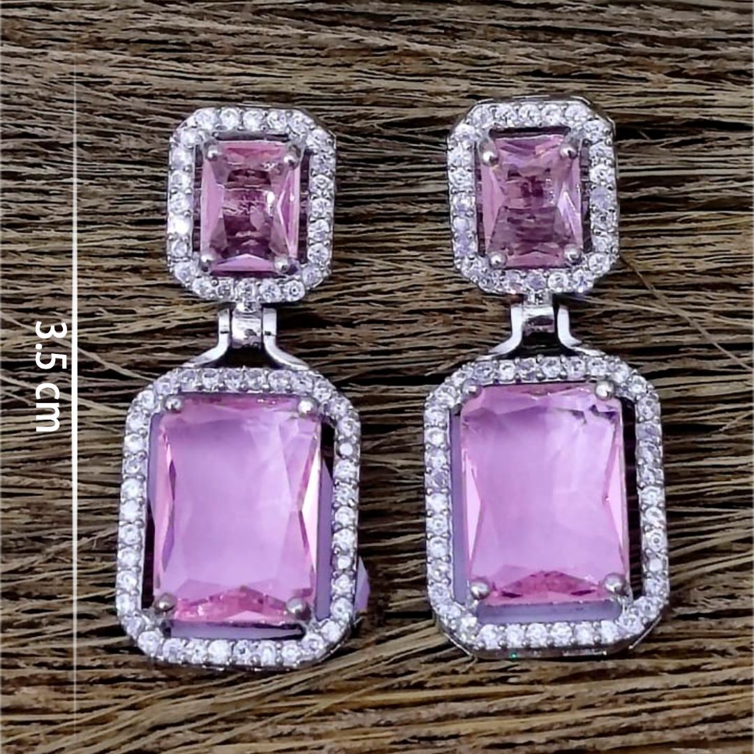 These Zircon Diamond Pink Earrings are the perfect accessory for any outfit. Whether you are going for a Traditional or Modern look, these earrings can be worn daily or for special occasions like Weddings, Receptions, and Parties. Not only do they look beautiful, they will also add an extra Sparkle to your look. Make sure to add these earrings to your collection and you won't regret it, They are sleek and small, and light on your Ears.
