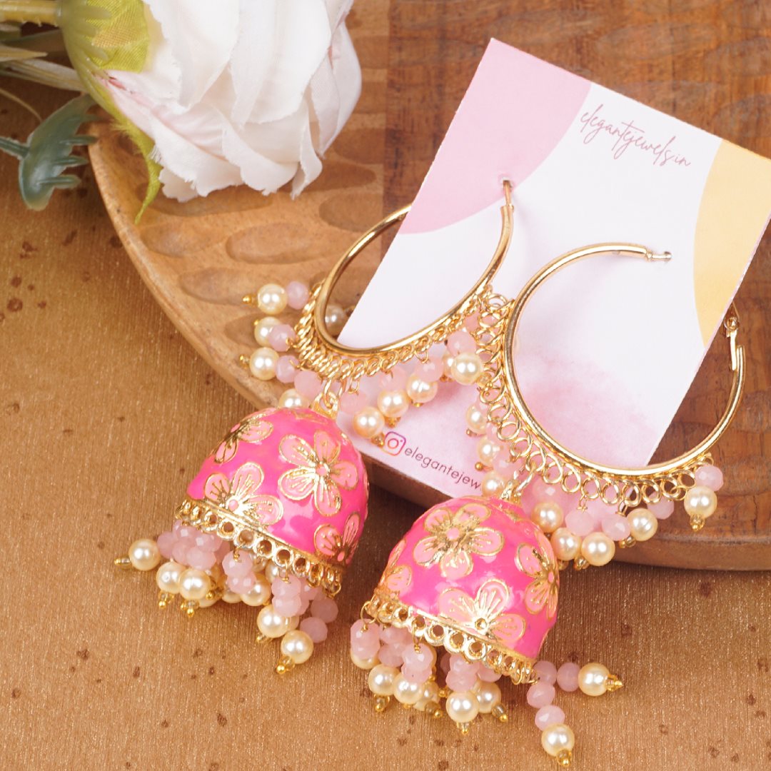 The Pink Bali jhumka, crafted with exquisite gold plating, is a charming and versatile accessory that complements various occasions with ease. Its elegant design and soft pink hue make it a perfect choice for every day wear, adding a touch of sophistication to any outfit.