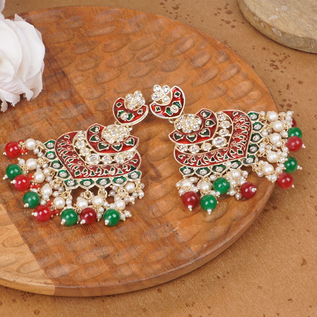Ideal for weddings, parties, and special gatherings, the Elegante Premium Multicolor Chandbali Earrings are bound to be the center of attention, drawing admiration and compliments from all around. Elevate your style and make a bold fashion statement with these breathtaking earrings that effortlessly enhance any outfit, be it a traditional Indian ensemble or a chic Western attire.