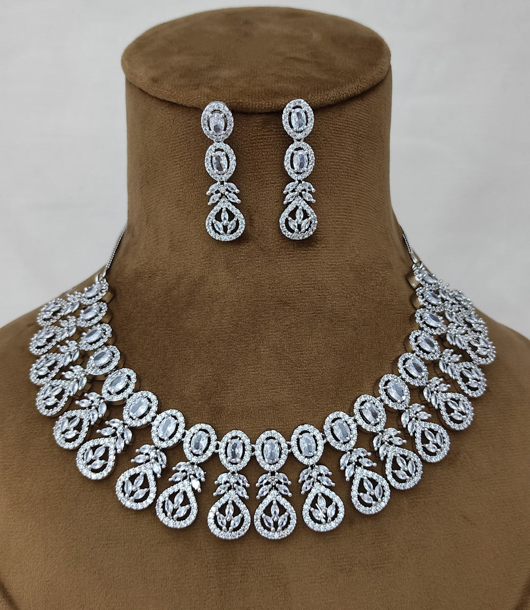 The Stunning Silver Diamond Necklace is an exquisite piece that effortlessly combines elegance and versatility. Crafted with intricate details, this necklace is a true masterpiece that adds a touch of luxury to any special occasion.