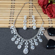 The silver plated Diamond drop Flexible Necklace is an Exquisite piece of Jewellry that exudes Elegance and Sophistication. Its Sleek and Stylish design makes it the perfect accessory for every occasion, be it a party, Wedding, Reception, Engagement or Birthday celebration.The silver plating adds a touch of glamour, making it a timeless piece that is sure to turn heads and matches with Every color Outfit as Silver is Neutral color.