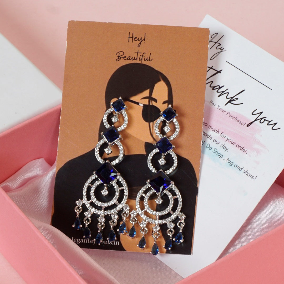 Stunning Design: Our dangler earrings boast a captivating zircon blue stone cradled within a silver-plated setting. The harmonious blend of colors and textures adds a touch of sophistication to your look.