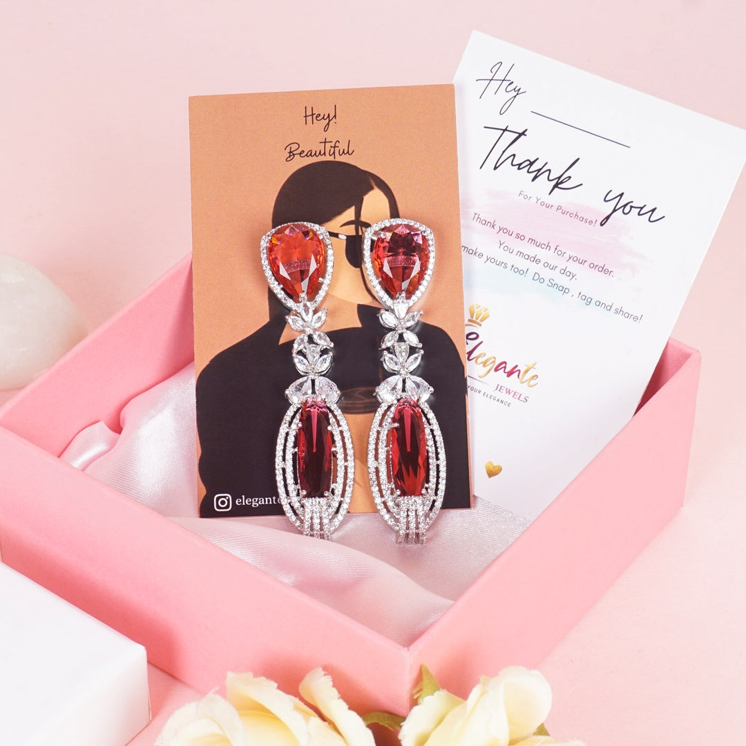 Designed for unforgettable moments, these earrings are perfect for dates, movies, romantic evenings, and parties. The vibrant Red hue of the Zircon Diamond adds a touch of romance and elegance to any outfit.